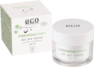 eco cosmetics Crème de jour bio intensive avec OPC, Q10 et acide hyaluronique, crème anti-rides végétalienne SPF 10, 1 x 50 ml