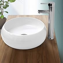 ECD Germany Vasque à Poser Lavabo Salle de Bain - Ø 350 x 120 mm - en Céramique - Rond - Blanc - Vasque Salle de Bain Lave-Mains Évier - Lavabo à Poser - Design Moderne - sans Kit de vidange