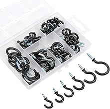 Crochet de sécurité pour crochet de plafond avec revêtement en vinyle recouvert d'une tasse, d'un crochet pour corde à linge, crochet à œillet, 58 pièces, 6 tailles (Noir)