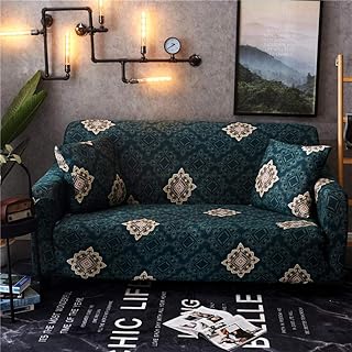 Housses de Canapé Amovible Lavable, Couverture de Canapé Elastique Revêtement Revêtement de Canapé Souple et Antidérapante,avec 1 Taie d'oreiller Gratuite (2 Places,Style américain, Vert)