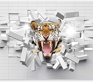 murando Papier peint intissé 400x280 cm Décoration Murale XXL Poster Tableaux Muraux Tapisserie Photo Trompe l'oeil animaux brique tiger murale g-B-0009-a-a