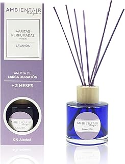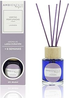 Ambientair. Diffuseur de bâtonnets parfumés. Désodorisant Mikado à la lavande. Diffuseur 50 ml avec bâtonnets de rotin. Désodorisant domestique sans alcool.
