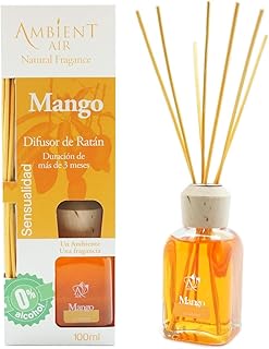 Ambientair Home. Diffuseur de bâton parfumé. Désodorisant à la mangue Mikado. Diffuseur 100 ml avec bâtonnets de rotin. Désodorisant domestique sans alcool.