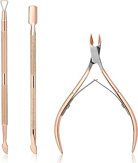 Jolintek Pousse Cuticules Pince Ongle, 3 Pièces Pince à Cuticules avec Coupe-Cuticules Poussoir à Cuticules en Acier Inoxydable, Dissolvant de Cuticule et Coupeur, pour Ongles et Orteils (Or Rose)