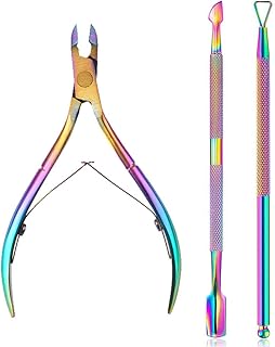 3 Pièces Pinces à Cuticules avec Coupe-Cuticules Poussoir à Cuticules Inox Kits d'outils manucure pour Nail Art et Pédicure, Kit Tondeuse à cuticules Ongles Incarnés Coupe-Ongles Kit(Caméléon)