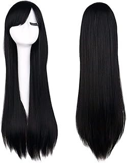 Perruque Cosplay Raide Longue Femme,Longue Droit Synthétique Perruque Cheveux Frange Bonnet Perruque Filet à Cheveux Halloween Noël Soirée à Thème Déguisement Loli Costume Cheveux Perruque,80CM