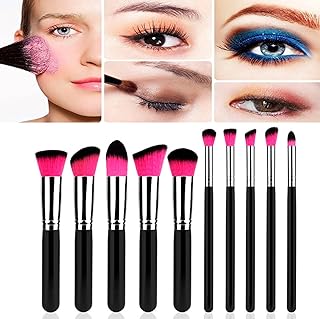 Demarkt Pinceau de Maquillage Kit 10pcs Professionnel Eyebrow Shadow Blush Fond De Teint Maquillage Outil Blanc … (Poignée Noire Brosse Pink)