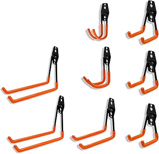 Aufun Lot de 8 crochets muraux pour garage - Utility Heavy Duty - En métal - Plusieurs tailles - En forme de U et en forme de J - Capacité de charge de 35 kg - Type A
