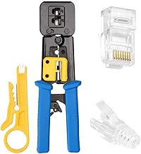 Pince à Sertir RJ45, Pince à Sertir Avec 50 Fiches Passantes Cat6 et 50 Pinces Multifonctions