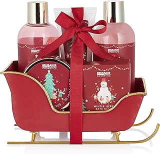 BRUBAKER Cosmetics - Coffret de bain & douche - Baies d'hiver/Joyeux Noël - 6 Pièces - Traîneau décoratif - Idée cadeau Femme & Homme