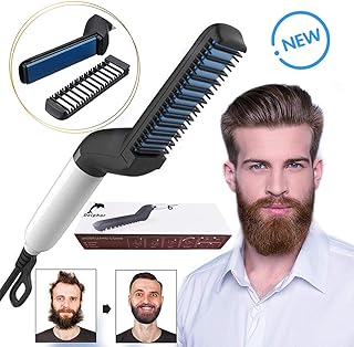 Lisseur électrique pour les Cheveux Brosse pour Hommes, Multifonctionnel Cheveux Styling Fer Peigne Cheveux Curling Lisseur Styler Rapide Barbe Lisseur Brosse À Chaleur Brosse(EU)