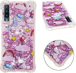 HopMore Coque Samsung Galaxy A7 2018 Silicone Paillettes Glitter 3D Antichoc Etui Souple Transparente Motif Strass Liquide Ultra Mince Fine Gel Case Housse Transparent pour Fille - Licorne Rose