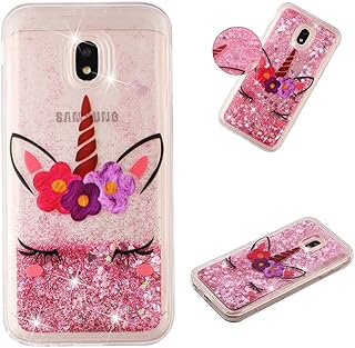 HopMore Silicone Coque pour Samsung Galaxy J3 2017 Paillettes Glitter 3D Antichoc TPU Souple Etui Transparente Motif Housse de Protection Strass Liquide Bumper Case Cover pour Fille Femme - Licorne