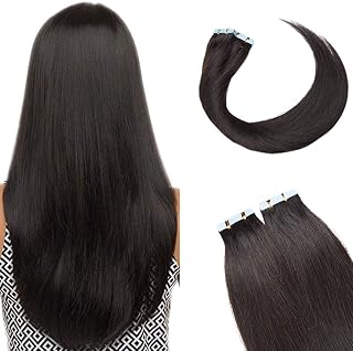 SEGO Tape In Remy Hair Extension Adhesive Cheveux Naturel - 50 CM 01#Noir Foncé [2.5g X 10 Pièces] - Vrai Cheveux a Froid Invisible Bande Adhésif