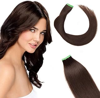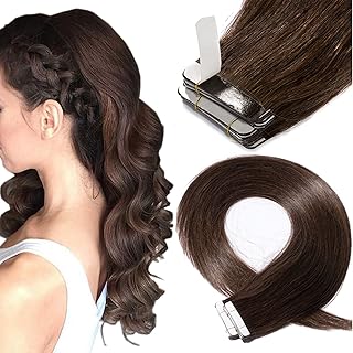 SEGO Extension Cheveux Naturel Adhesive Tape in Remy Bande Adhésif - 45 CM 02#Châtain Foncé [2.5g X 20 Pièces] - Adhésif Vrai Humain Invisible Tape In Remy Hair