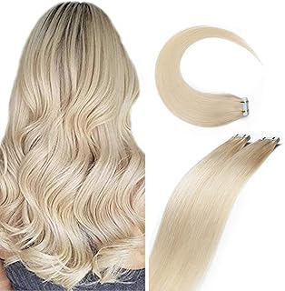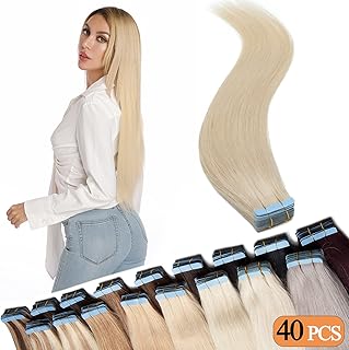 SEGO 40 PCS Extension a Froid Cheveux Naturel Adhesive Bande Remy - 60CM 60#Blond Platine 100g (2.5g/Pièces) - Vrai Afro Adhesif Rajout Tape in Invisible Humain