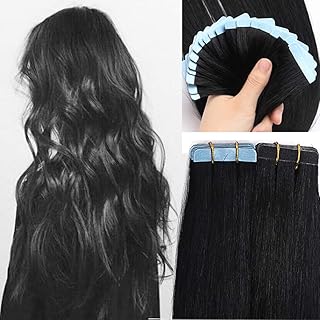 SEGO Extension a Froid Cheveux Naturel Adhesive Bande Remy - 55 CM 1B#Noir Naturel [2.5g X 10 pcs] - Vrai Afro Adhesif Tape in Invisible Humain