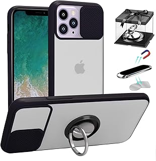 Coque Compatible avec iPhone 12 Pro Max, [Protection Caméra Glissante] [avec Bague Support Rolation à 360° & Support Telephone Voiture & 2PCS Plaques de Métal] Coque Matte Translucent Bords Souples