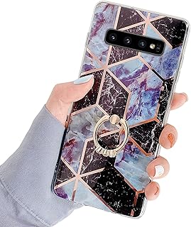 JAWSEU Compatible avec Samsung Galaxy S10 Coque Marbre Motif avec Support de Bague Placage Silicone TPU Souple Étui Housse de Protection Ultra Mince Anti-Rayures Bumper Case Coque,#6