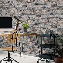 Fresco Papier Peint Support Papier Briques Vintage 1000 x 53cm Bleu, Ocre